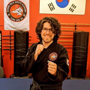 Brad Green started his martial arts journey back in 2010 while living in upstate New York where he obtained a Brown Belt in a mix of Shotokan and Uechi-Ryū karate. Since moving to Texas in 2015, Brad has studied at Round Rock Karate Academy where in 2023 he attained the rank of Sam Dan (Third Degree Black Belt) and became a Kyo Sa (Certified Instructor).
